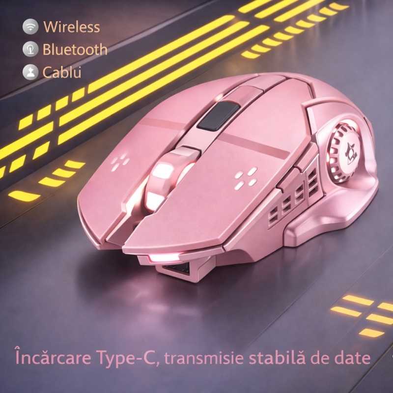 Sistemul de iluminare tip colorful breathing ofera un aspect dinamic si completeaza designul specific unui setup de gaming. Forma ergonomica, cu profil fluid, este gandita pentru o prindere confortabila in mana si pentru reducerea oboselii in timpul utilizarii prelungite.