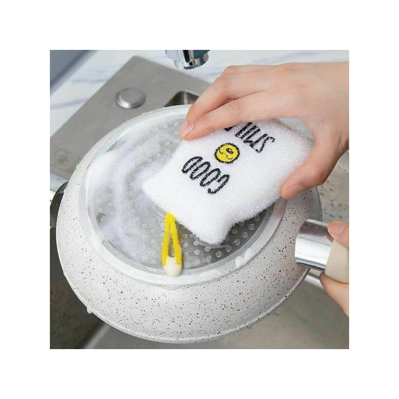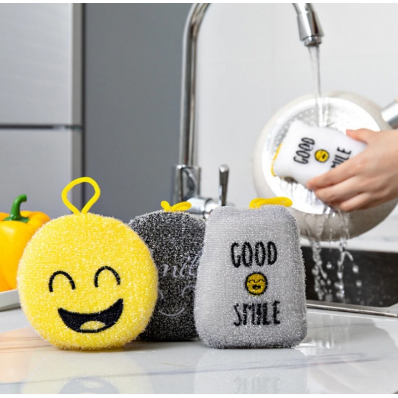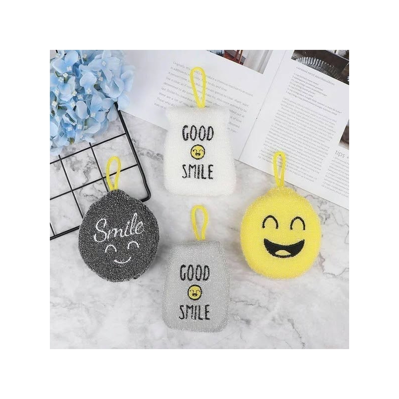 Adaugă un strop de veselie în bucătăria ta cu acest set de 4 bureți de vase cu design amuzant! Fiecare burete are un model diferit, de la fețe zâmbitoare la mesaje pozitive precum „Good Smile” și „Smile”.