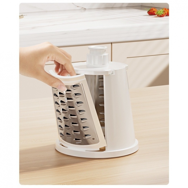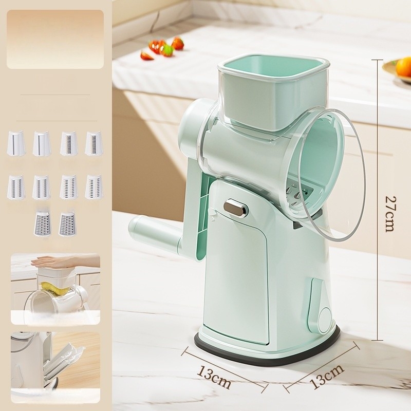 Răzătoarea manuală este un ajutor practic și eficient în orice bucătărie, concepută pentru feliere, răzuire și mărunțire rapidă a legumelor, fructelor sau brânzeturilor. Designul rotativ cu manivelă reduce efortul depus, iar sistemul de prindere cu ventuză asigură stabilitate maximă în timpul utilizării.
