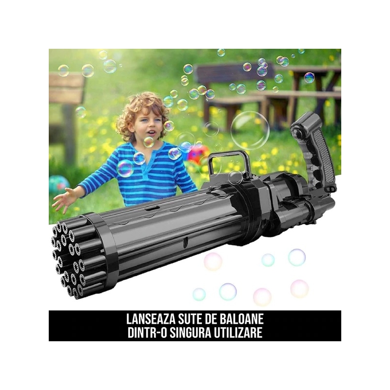 Pistolul are 21 de gauri prin care ies baloanele, avand un flux abundent de bule de sapun, care ii va distra maxim pe cei mici.