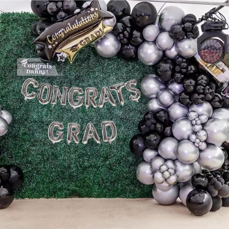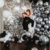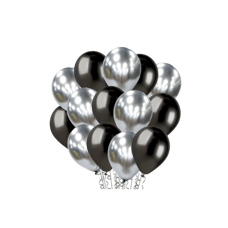 -10 Baloane din latex Chrome, Culoare Negru si Argintiu, dimensiune 23 cm;