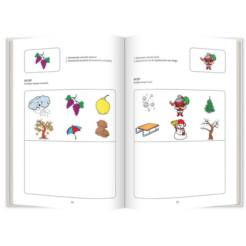 Caietul de activități de cunoașterea mediului pentru grupele mică și mijlocie urmărește scopuri didactice clare, evidențiate pentru fiecare sarcină în parte. Copilul va reuși: