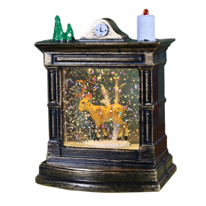Adauga o nota de caldura si magie sarbatorilor de iarna cu aceasta decoratiune de Craciun ingenioasa, inspirata de un semineu sau un ceas de masa vintage! Aceasta piesa festiva combina farmecul unui glob de zapada cu sclipici si o scena adorabila, toate iluminate pentru a crea o atmosfera de poveste.
