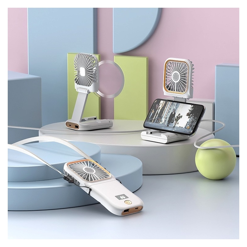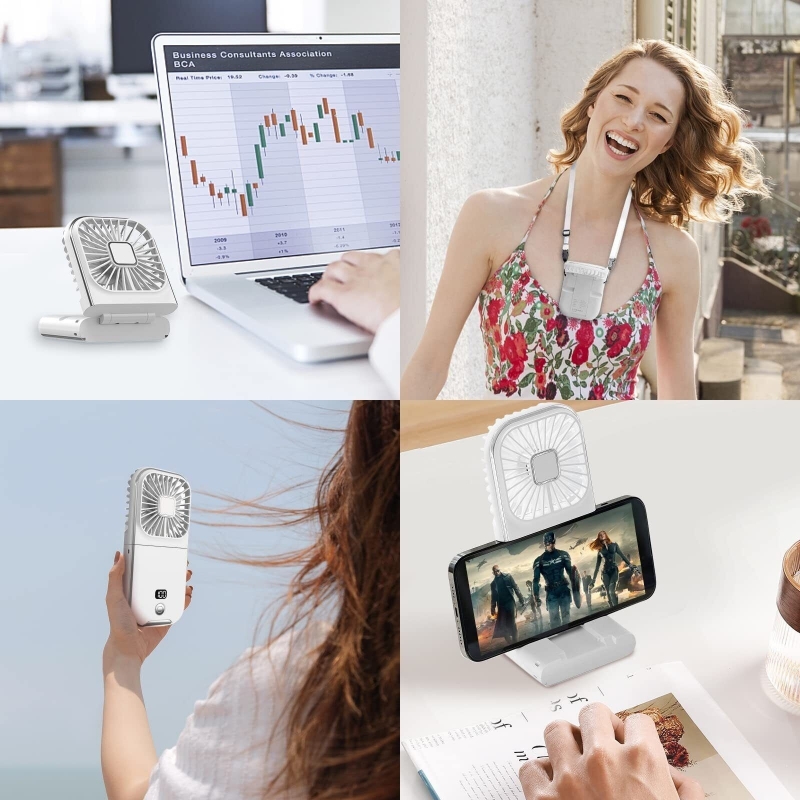Design Compact si Pliabil: Cu un design pliabil, ventilatorul este usor de transportat si de stocat. Perfect pentru a fi folosit pe birou, ca ventilator portabil sau chiar în jurul gâtului pentru o racorire personalizata.