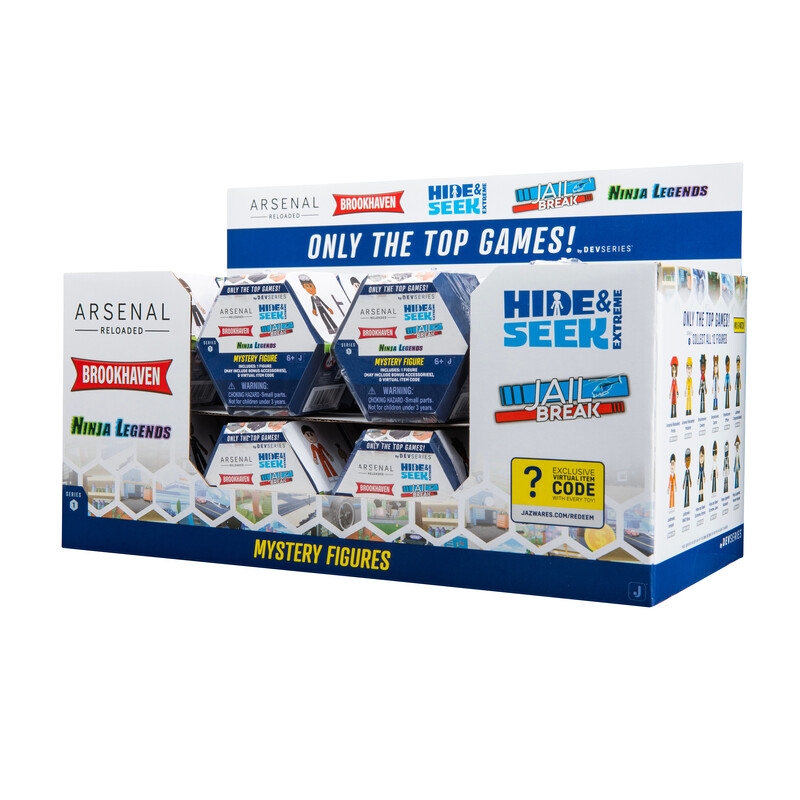 Descopera noile pachete surpriza din seria Dev Series! Aceste pachete contin personaje din cele mai populare jocuri de pe platforma Roblox si au dimensiunea de 5 cm. Fiecare pachet contine si un cod exclusiv care poate fi folosit pentru a obtine diverse beneficii pe platforma Roblox.