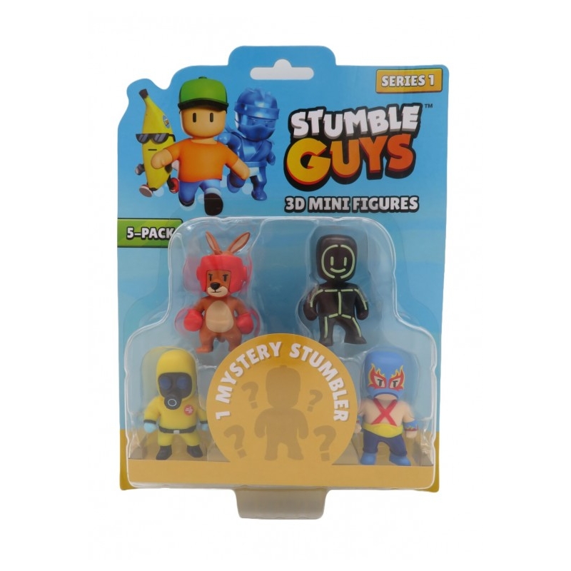 Setul de 5 mini figurine Stumble Guys 3D aduce in fata fanilor o colectie de personaje misterioase, printre care se numara: Glowman, Boxing Roo, Luchador, Hazmat NBC, dar si un personaj surpriza!