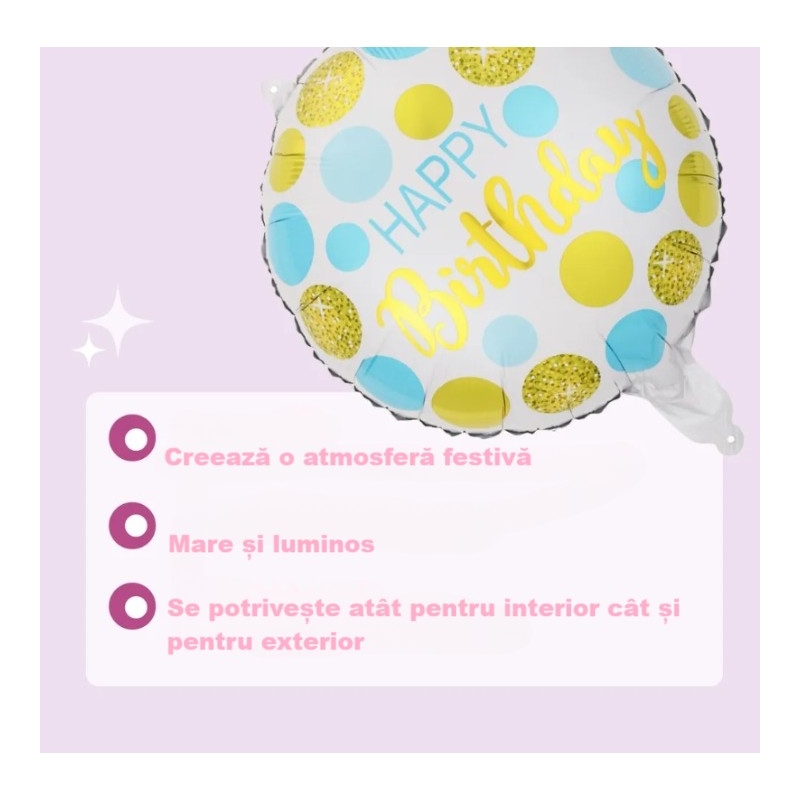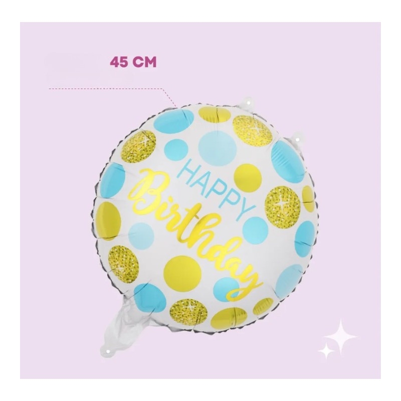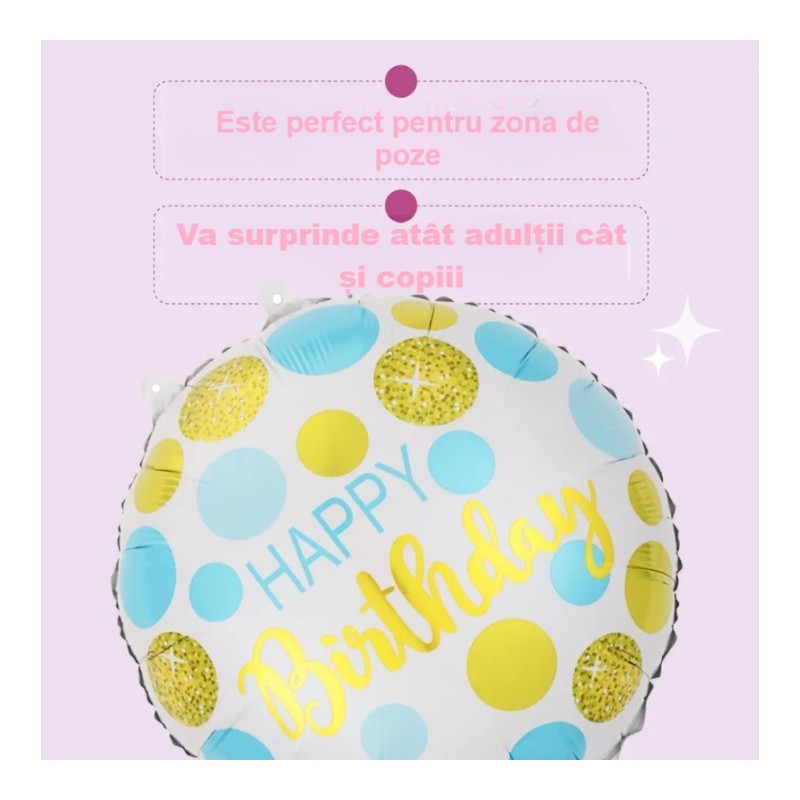 Balon din Folie Metalizata, Flippy, Figurine, Model 5, Happy Birthday, Tematica Aniversare, 45 cm, Ambalaj Individual, Pai Inclus, Umflare cu Aer sau Heliu, Multicolor