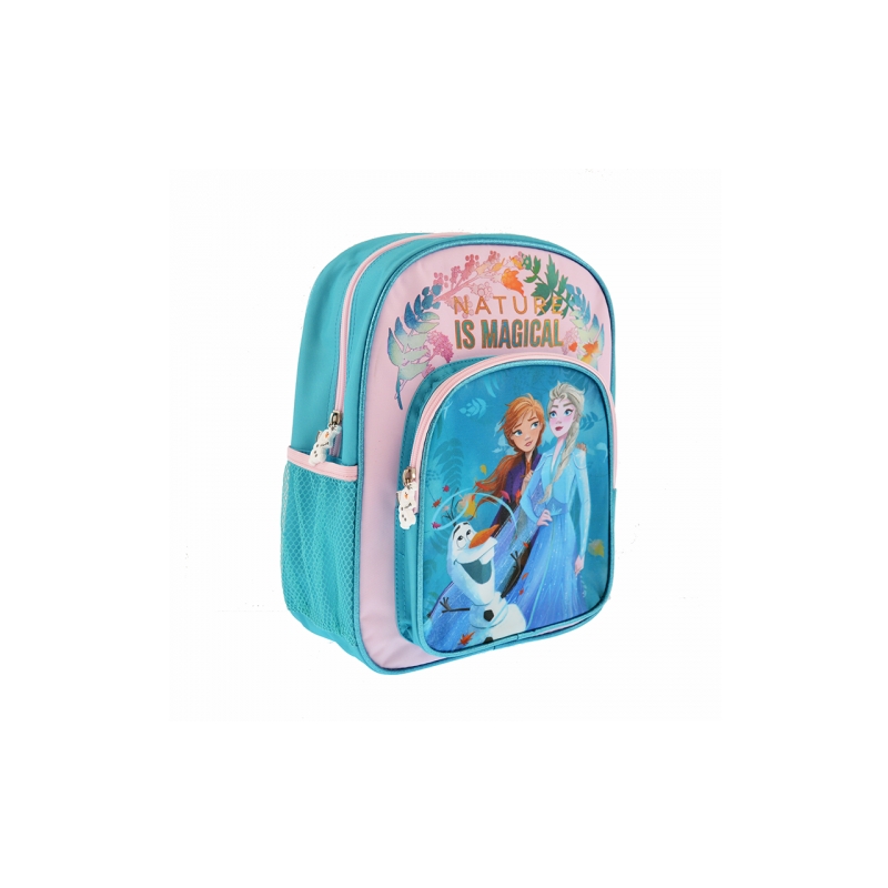 Ghiozdan mic cu 2 compartimente de diferite dimensiuni ce au deschidere cu fermoar, 1 buzunar lateral si bretele reglabile.
