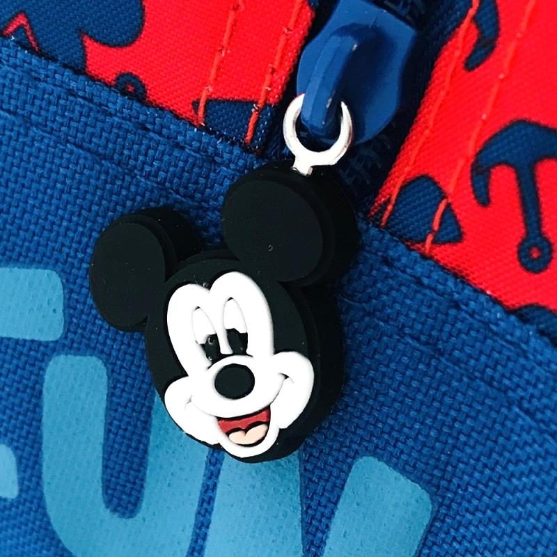 Ghiozdan 3D Mickey cu 1 compartiment mare prevazut cu fermoar, 1 buzunar lateral, bretele buretate si reglabile. Fermoarul este accesorizat cu personajele in miniatura.