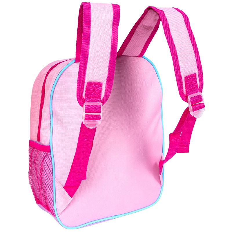 Ghiozdan mic Minnie Mouse cu 1 compartiment ce are deschidere cu fermoar, 1 buzunar lateral, bretele buretate si reglabile. Fermoarul este accesorizat cu personajele in miniatura.