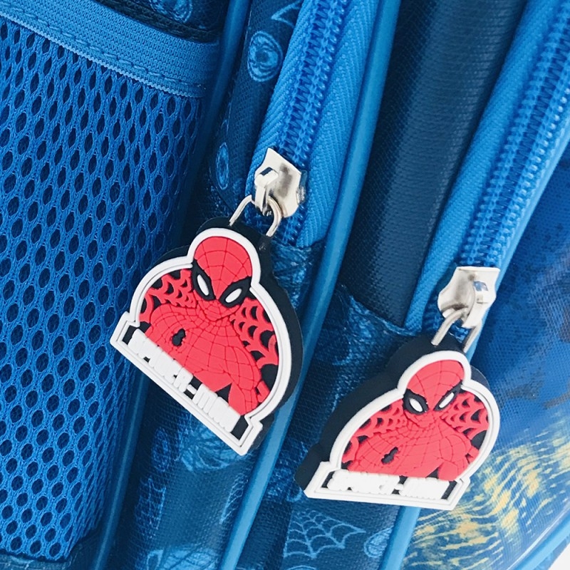 Ghiozdan mare cu 3 compartimente de diferite dimensiuni prevazute cu fermoar. Compartimentul mare este dotat cu un separator interior. 2 buzunare laterale, bretele late, buretate si ajustabile. Fermoarele sunt accesorizate cu personaje in miniatura.