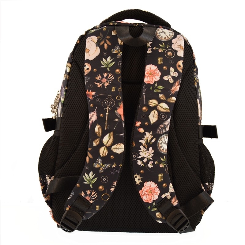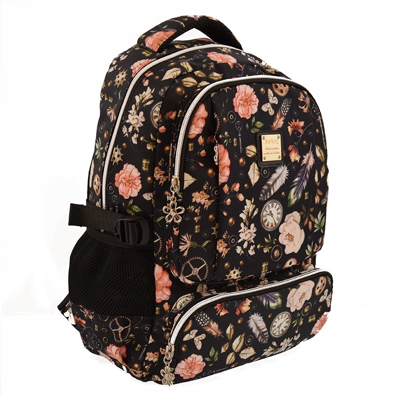 Rucsac marecu 1 compartiment marece are deschidere cu fermoar dotat cu 1 buzunar cuprotectiepentrulaptopsi separator interior si 1 buzunar mic prevazut cu fermoar, 1 buzunar frontal mediu si 2 buzunare frontalele mici, toate prevazute cu fermoar, 2 buzunare laterale, partea din spate a acestuia este buretata, bretele late, buretate si ajustabile, iar fermoarele sunt metalice cu flori.