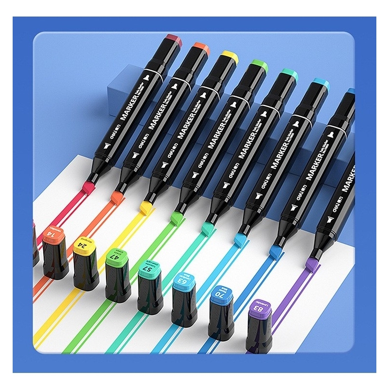 Exprima-ti creativitatea cu acest set de markere pe baza de ulei, ideale pentru schite, ilustratii, caligrafie sau proiecte DIY. Fiecare marker este echipat cu 2 vârfuri diferite (1 mm, 3 mm si 6 mm) pentru detalii fine sau acoperire rapida. Setul vine într-o geanta practica din pânza Oxford, perfecta pentru depozitare si transport.