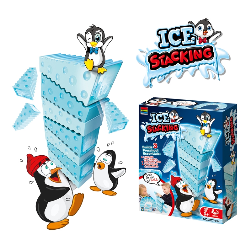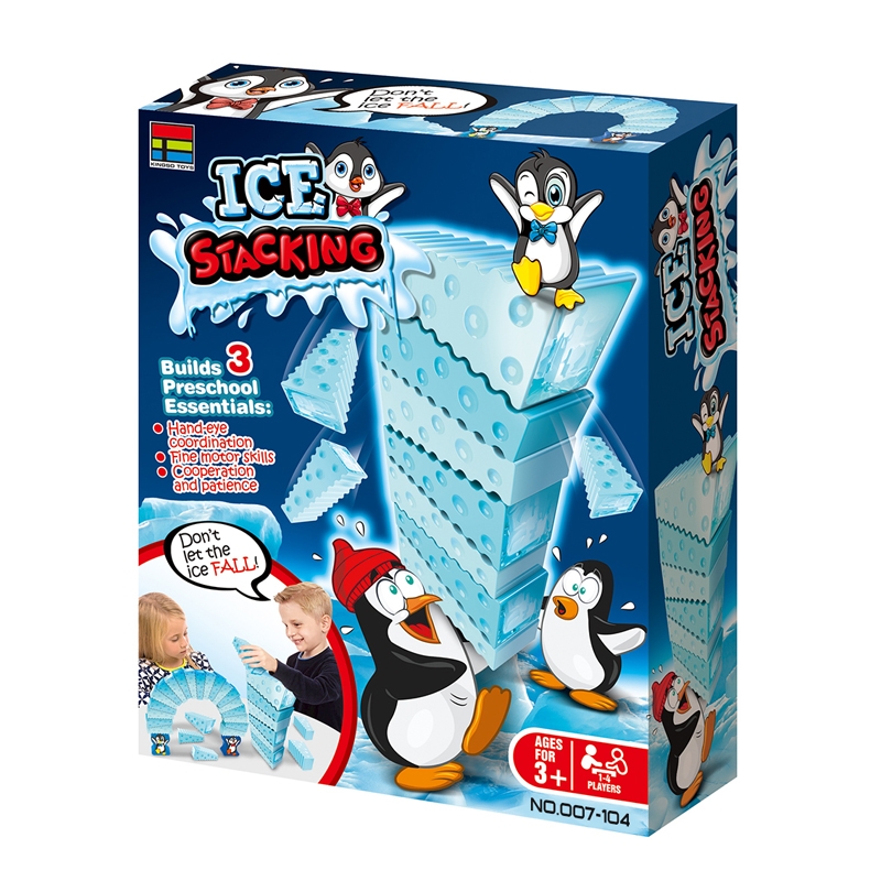 Impartiti intre voi sloiurile de gheata! Puneti pinguinul la mijloc. Incepe jucatorul cel mai tanar. Puneti sloiurile unul cate unul pe bratele pinguinului. Jucatorul la care sloiurile de gheata s-au daramat le ia pe toate. Jocul continua cu urmatorul jucator care pune sloiul sau. Castiga cel care termina primul sloiurile. Jucati in echipa si incercati sa uniti cei 2 pinguini printr-o arcada de sloiuri. Veti reusi?