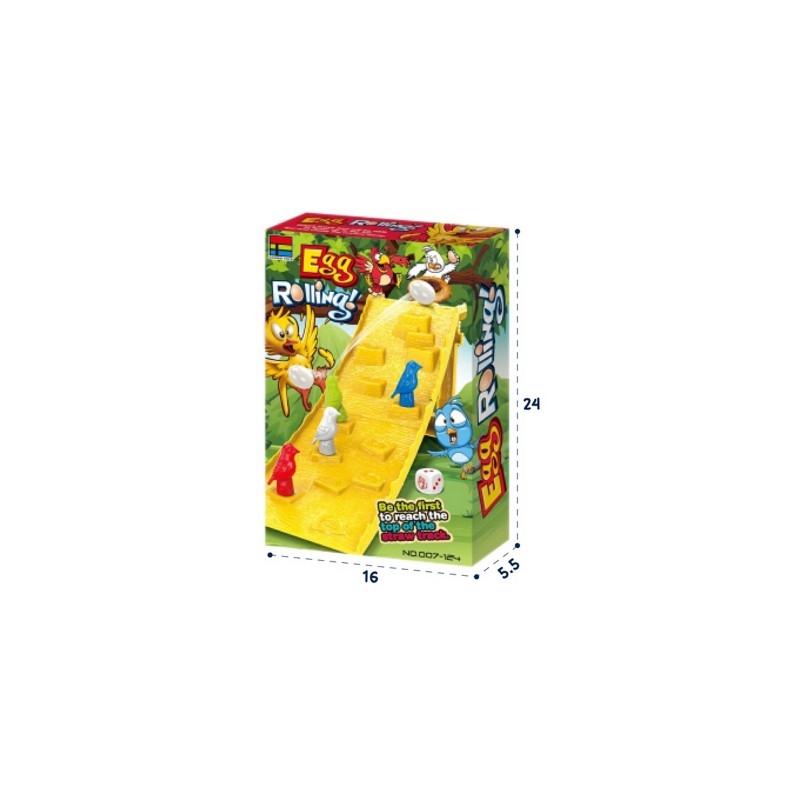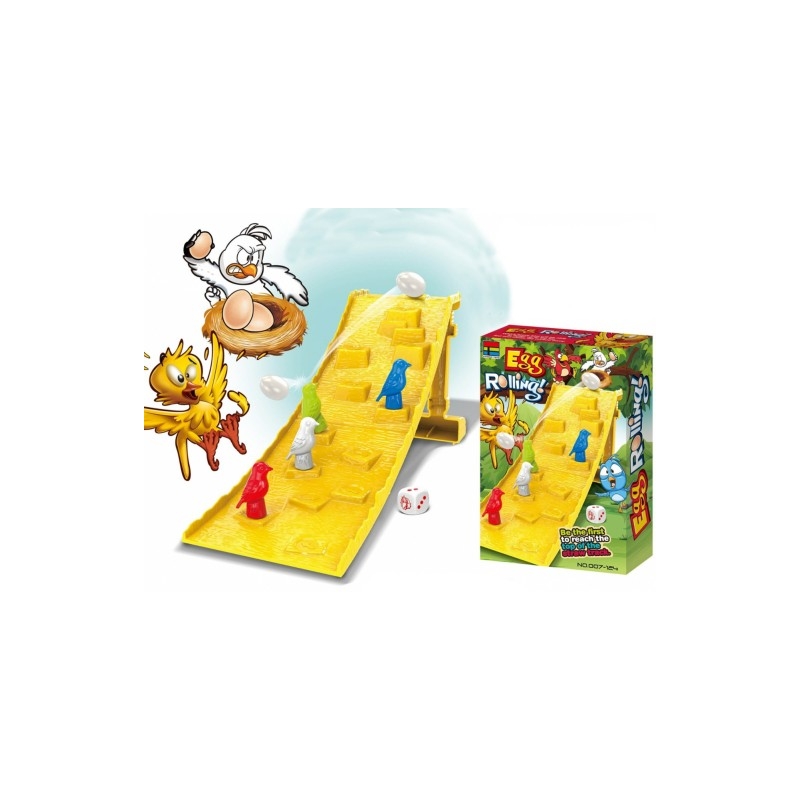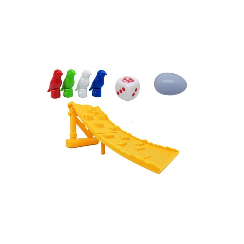 Joc distractiv pentru copii de la 3 ani. Jocul poate fi jucat de 2 până la 4 jucători. Scopul jocului este să ajungi în vârful pistei. Lansăm zarurile marcate cu casetele: 1 punct, 2 puncte sau 3 puncte și trei poze cu o pasăre. Dacă desenăm un pătrat cu puncte, ne mutăm figura păsării în atâtea poziții în sus câte ochiuri sunt pe zaruri. Pasărea se deplasează peste baloți de paie în direcțiile marcate cu săgeți. Dacă desenăm o pasăre, putem decide dacă vrem să mutăm pionul pe un câmp sau să aruncăm oul de sus. Putem pune oul într-unul din cele trei locuri din vârful pistei. Dacă oul bate pasărea adversarului, acesta trebuie să reia jocul. De asemenea, trebuie să avem grijă să nu ne lovim pasărea din întâmplare. Desigur, câștigătorul este cel care ajunge primul în vârf. Vă dorim multă distracție.
