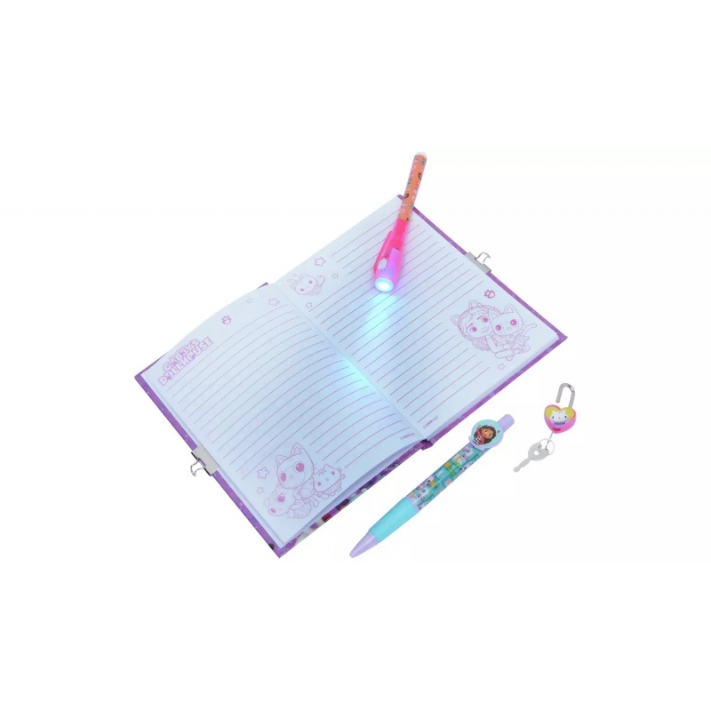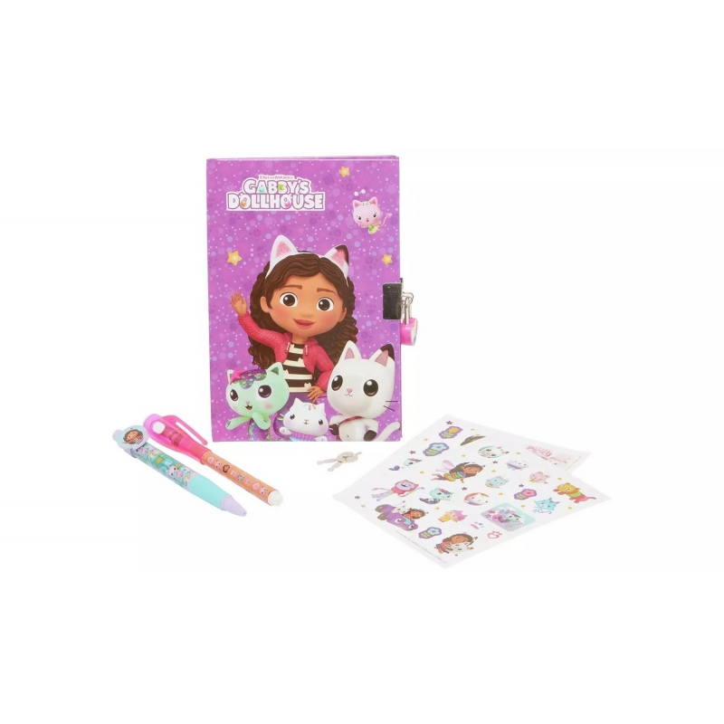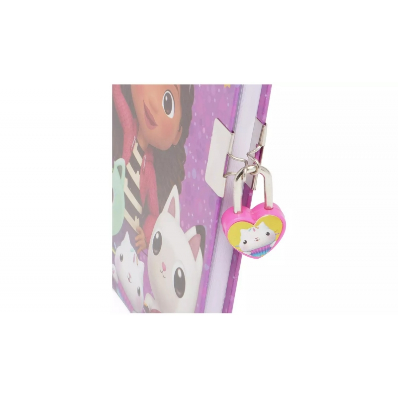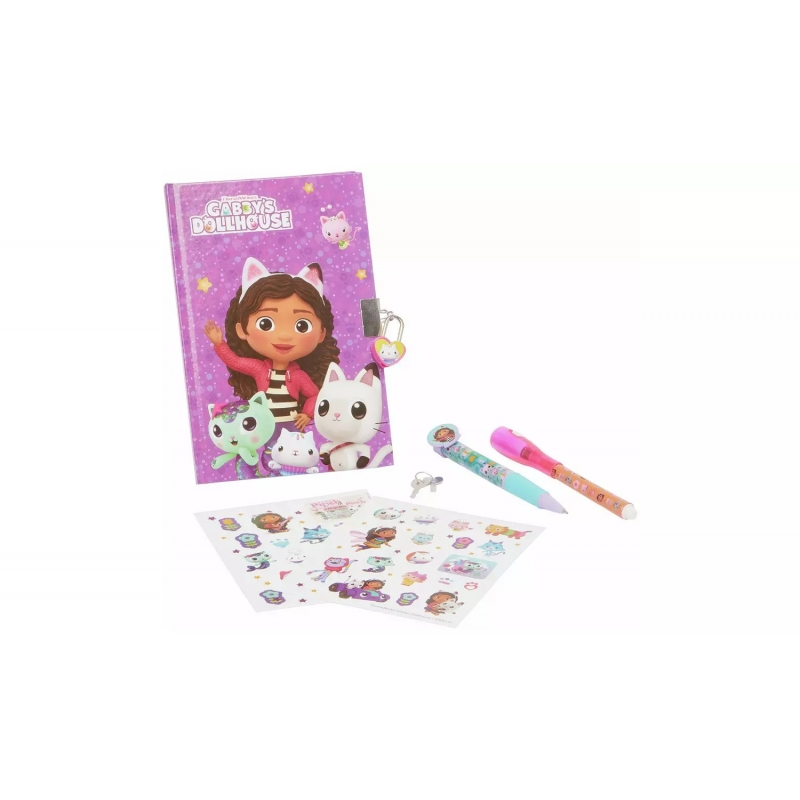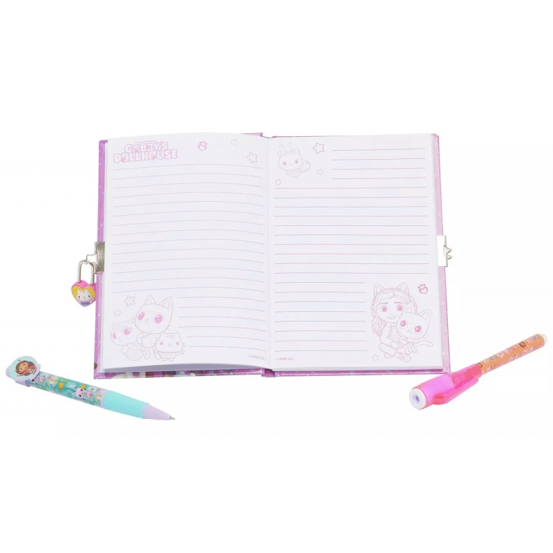 Păstrează-ți toate secretele în propriul tău jurnal Gabby's Dollhouse. Scrie toate secretele tale și apoi folosește cheia pentru a încuia lacătul.