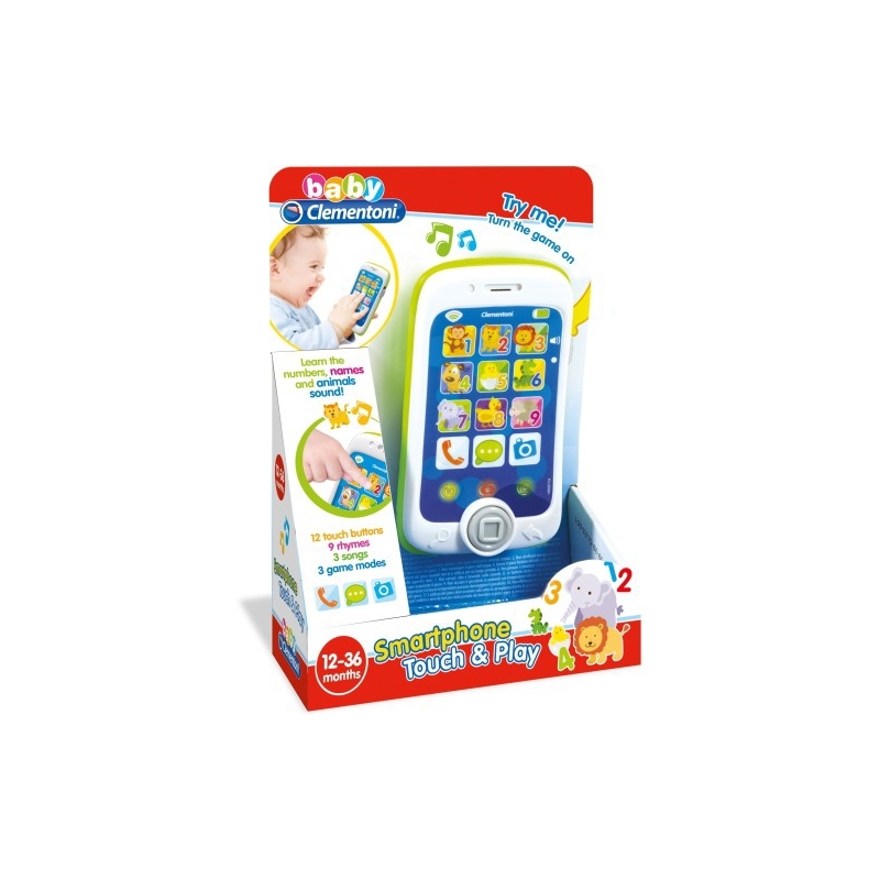 Acest smartphone de la Baby Clementoni este un centru de activitate, avand 12 butoane interactive, 9 rime amuzante, 3 cantecele si 3 moduri de joaca. Jucaria stimuleaza dexteritatea manuala, ajuta la dezvoltarea perceptiei vizuale si auditive si recunosterea relatiei dintre cauza si efect. Dezvolta coordonarea dintre maini si ochi si afectivitatea. Ajuta la dezvoltarea psihomotorie, emotionala si cea cognitiva. Varsta recomandata: 12 luni+. Necesita 2 baterii 1.5V/AAA/LR03, sunt incluse doar in scop demonstrativ.