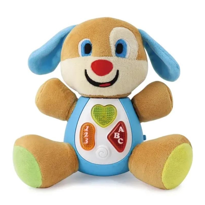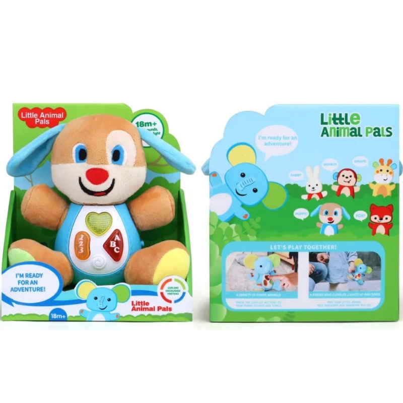 Catel din plus cu lumini si melodii, o jucarie minunata pentru bebelusi.