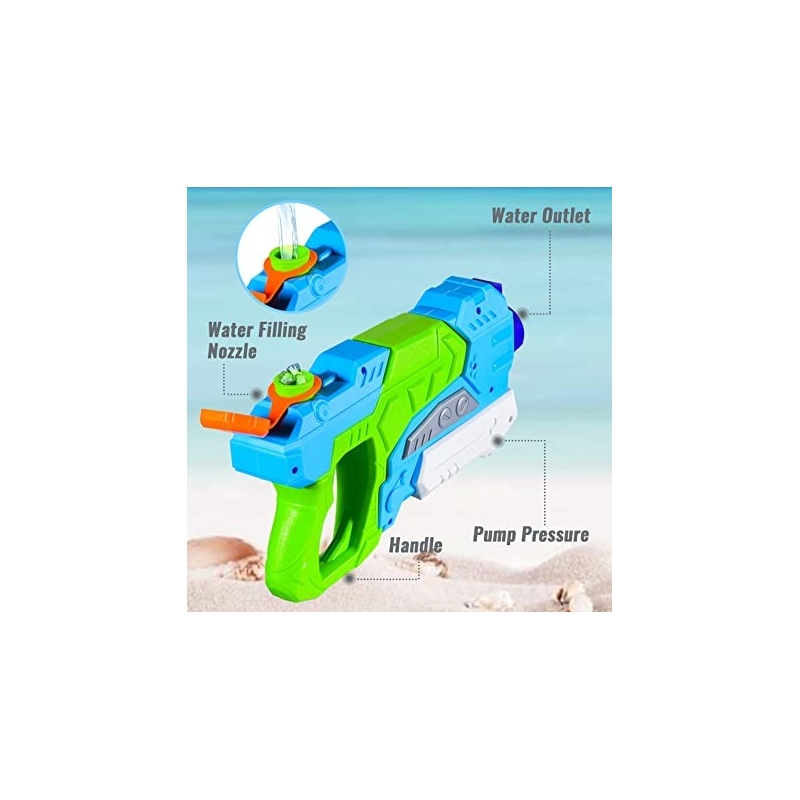 Rezervor de apă de mare capacitate, puneți presiune pe pompă și apăsați pe trăgaci pentru a trage. Copiilor le place și este, de asemenea, un cadou bun. Este, de asemenea, o jucărie de apă bună pentru animalele dvs. de companie care se distrează vara, pentru a răci câinii și pentru ca aceștia să se bucure de apă în siguranță. Vă puteți aduce copiii să se joace pe plajă, piscină sau terasă. Toți sunt fericiți că își pot petrece timpul împreuna.