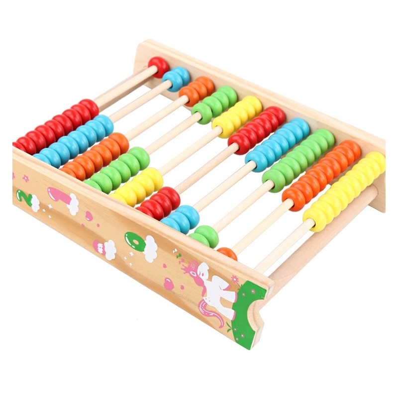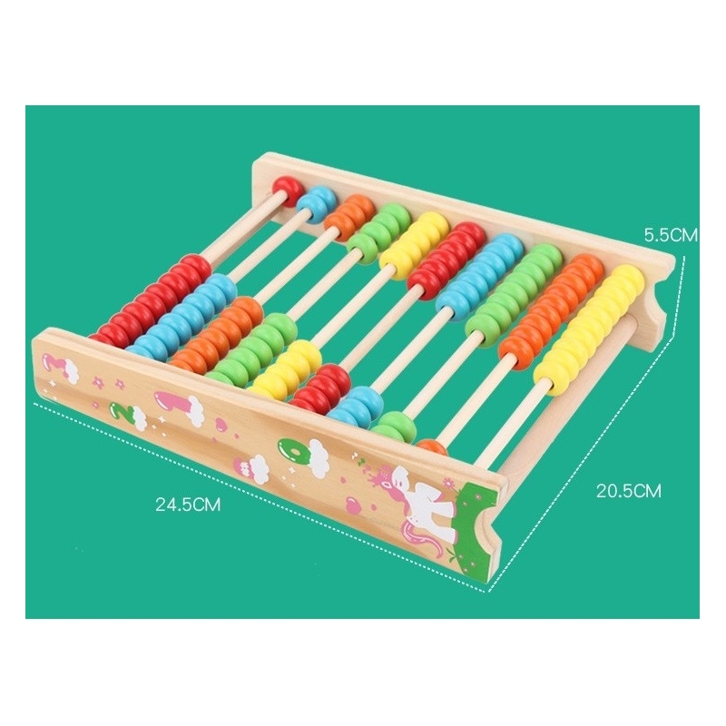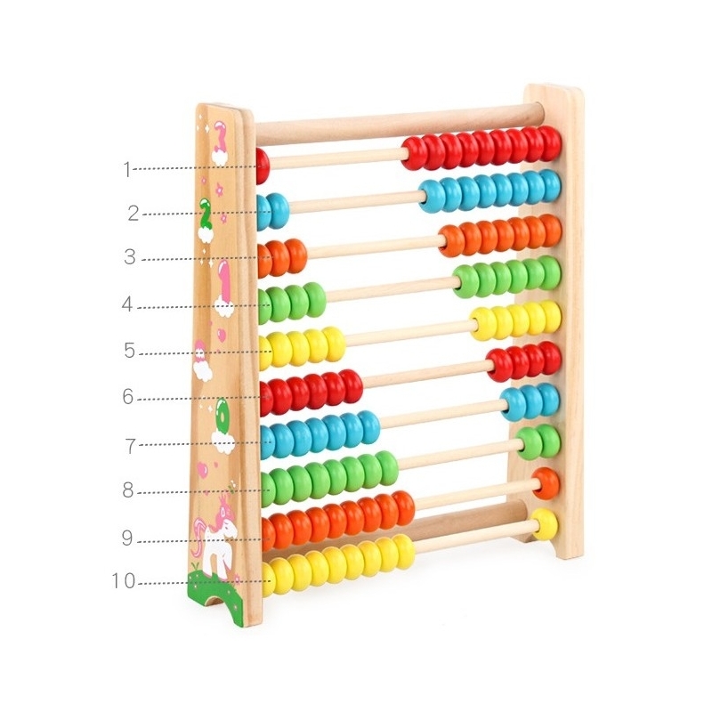 Numaratoarea include 10 siruri, fiecare avand 10 margele colorate. Aceasta structura intuitiva ii ajuta pe copii sa inteleaga conceptele matematice de baza, cum ar fi ordinea si numararea, intr-un mod interactiv si hands-on.
