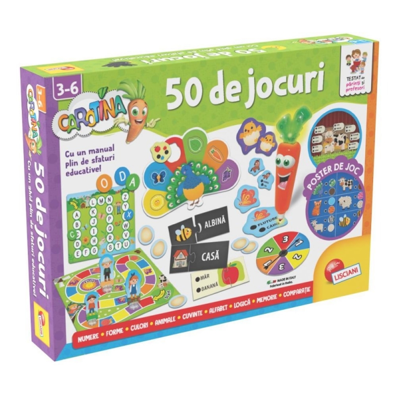 Prin combinarea materialelor, se pot juca 50 de jocuri distractive si educative, explicate intr-un mod simplu in ghidul pentru parinti Inclus in pachet.