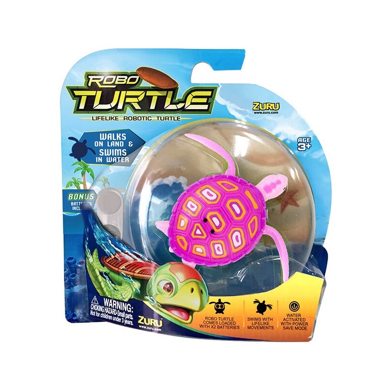 Distreaza-te pe apa si pe uscat cu broscutele testoase Robo Turtles! Pune-le in apropierea apei si urmareste-le mersul incet si leganat catre mal. Broscutele folosesc inotatoarele mobile pentru a merge sau pentru a inota si a se roti in apa.