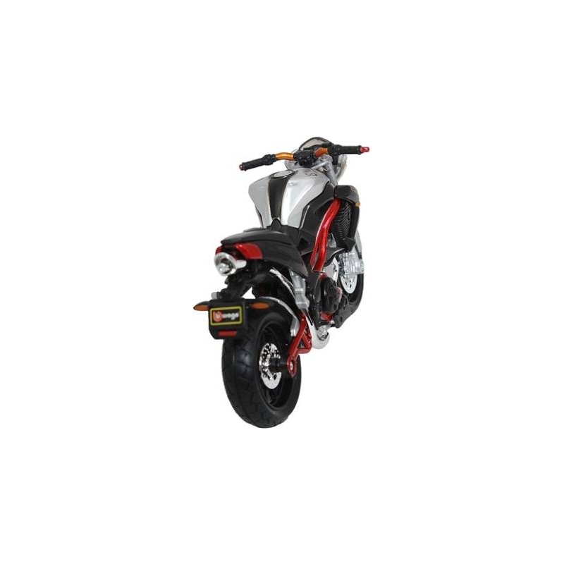 Este ideala pentru colectionari, dar si pentru cei care vor sa ofere un cadou deosebit. Motocicleta se livreaza in cutie proprie cu pereti de plastic transparent. Prezinta cric pe care se poate sprijinii dupa scoaterea din ambalaj.