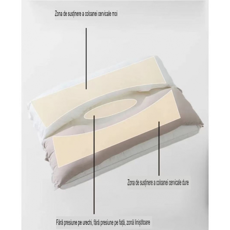 Descoperă confortul suprem cu Perna 3 în 1, special creată pentru a oferi susținere cervicală optimă, indiferent de poziția de somn. Designul inteligent cu strat dublu și formă ergonomică asigură relaxarea completă a gâtului, umerilor și capului.