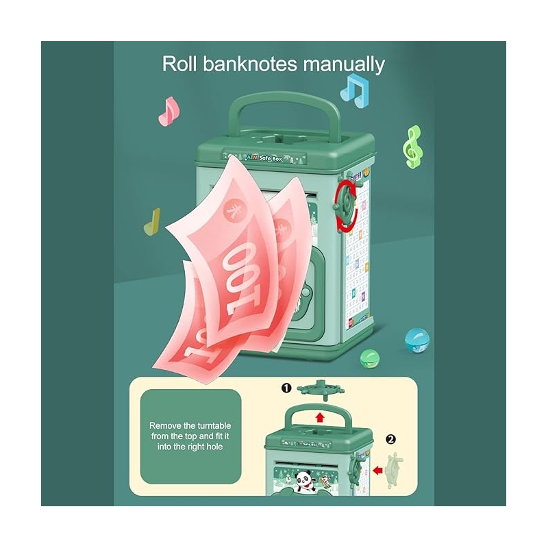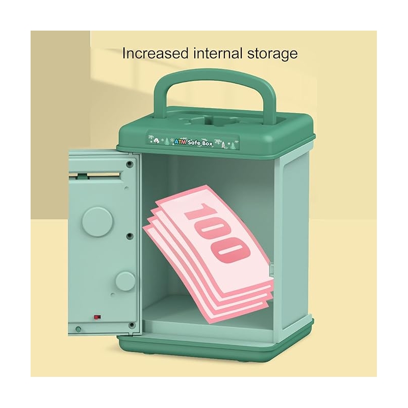 Această pușculiță tip ATM oferă o modalitate sigură și interactivă de a economisi bani. Dispune de un sistem de securitate cu parolă și senzor de amprentă, asigurând o protecție suplimentară pentru economiile copiilor. Este ideală pentru a-i învăța pe cei mici despre importanța economisirii, oferindu-le în același timp o experiență distractivă și educativă. Perfectă pentru copiii de toate vârstele!