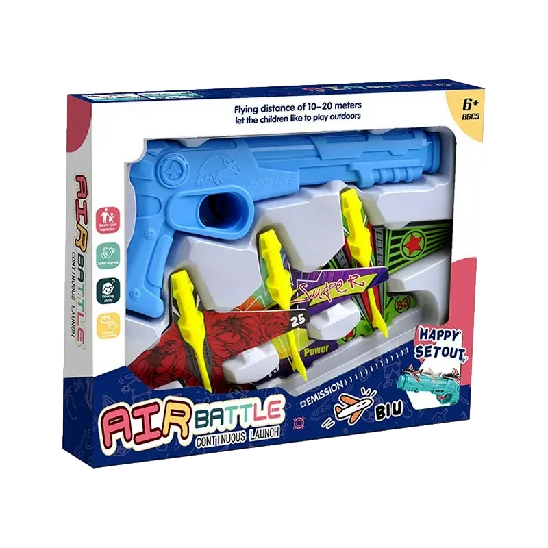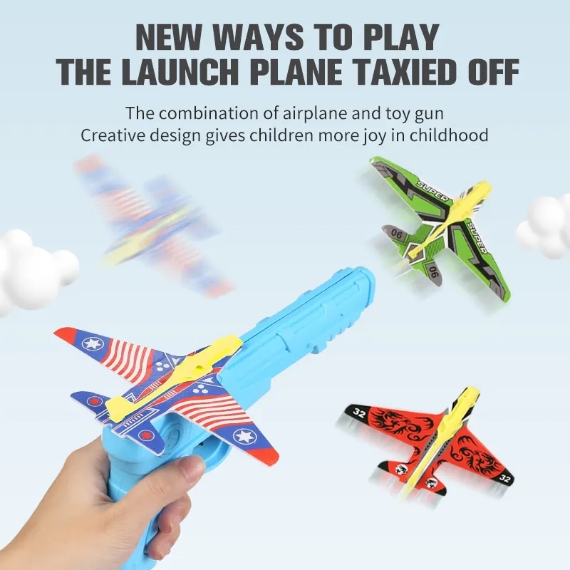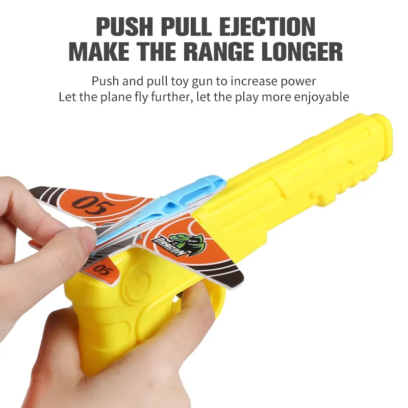 Pune avionul pe sina pistolului si trage-l spre tine. Apoi apasa tragaciul si lanseaza-l in aer.