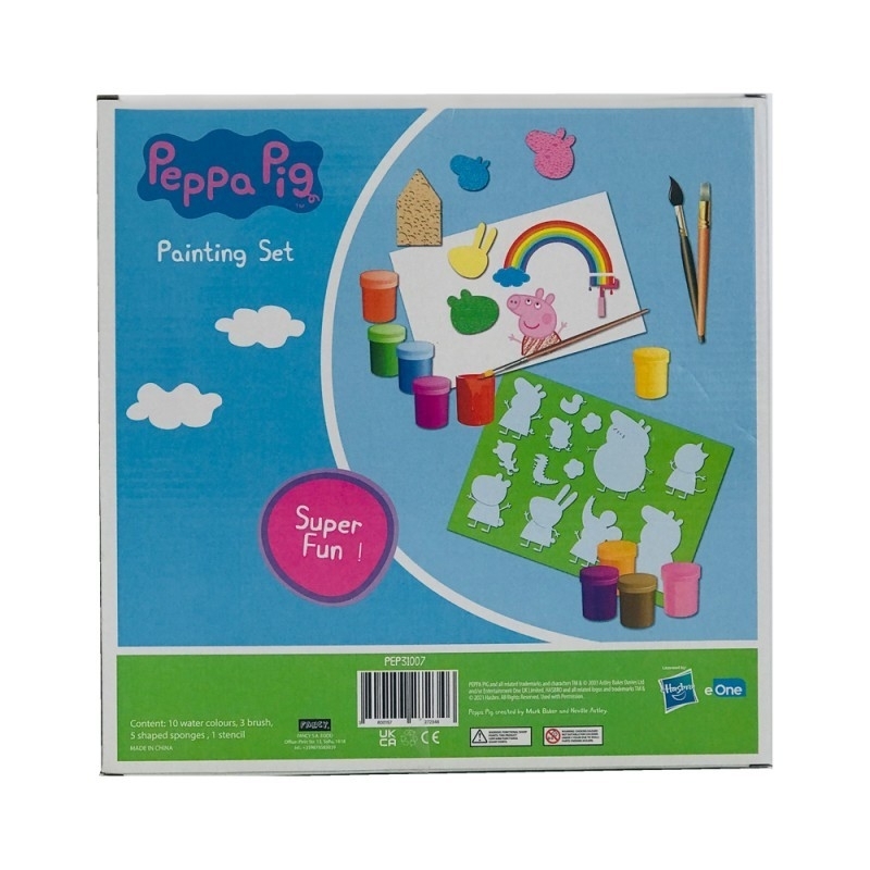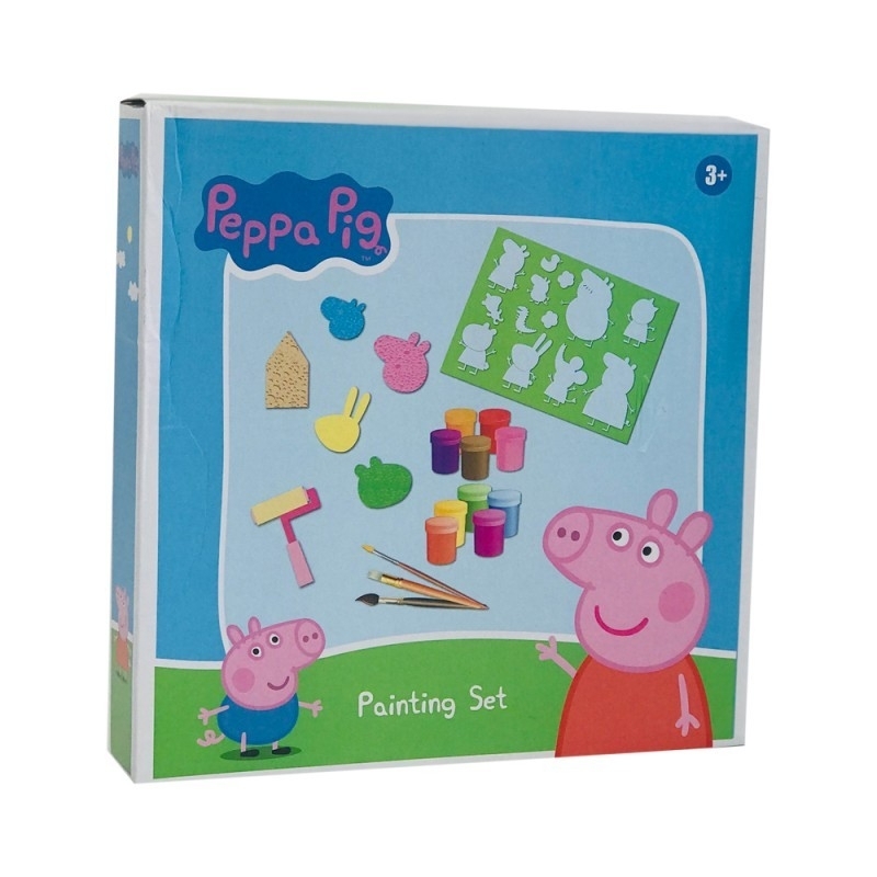 /span>Set pictura Peppa Pige contine 10 guase pe baza de apa, 3 pensule, 5 buretei de pictura, 1 rulou de pictura si 1 sablon din plastic.