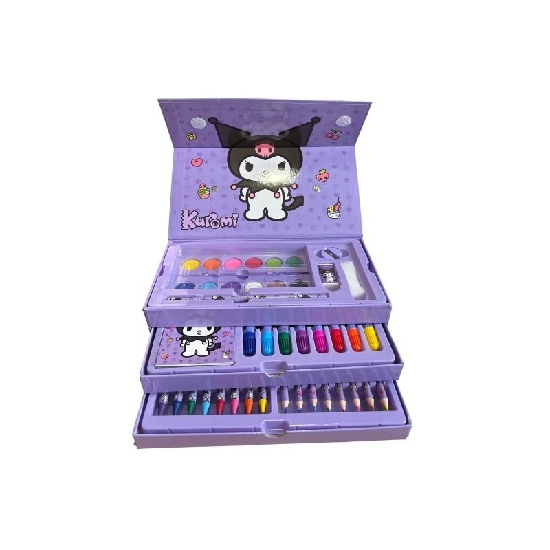 Încurajează creativitatea și ordinea cu această cutie de colorat Kuromi cu sertare, un organizator practic și atractiv pentru toate rechizitele de desen ale copiilor. Cu un design vesel inspirat din universul Kuromi, acest produs este ideal pentru micii artiști care iubesc să coloreze și să creeze.