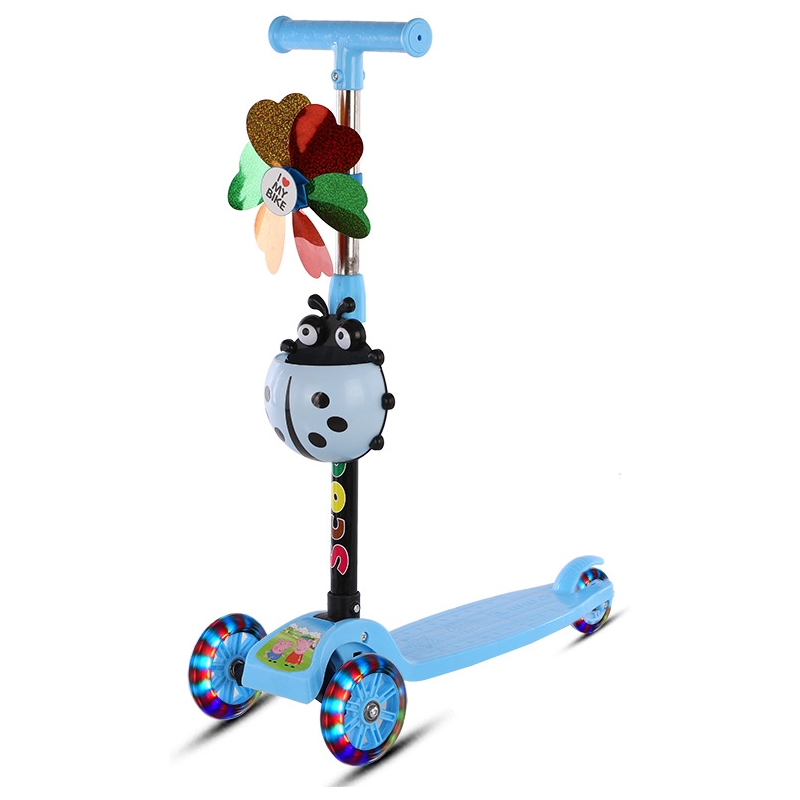 Plimbarile in parc nu vor fi nicicand mai frumoase! Torineta pentru copii este realizata din materiale rezistente in timp si sigure pentru deplasarea copilului dumneavostra. Trotineta Pentru Copii, Model Buburuza Albastra are in componenta 3 roti, 2 pozitionate in partea din fata, pentru echilibrul din timpul mersului si una in partea din spate, pentru a prinde viteza. De asmenea aceasta are un ghididon cu tija reglabila, in functie de inaltimea copilului dumneavoastra, dar si roti din silicon silentioase si luminoase in timpul mersului pe aceasta.