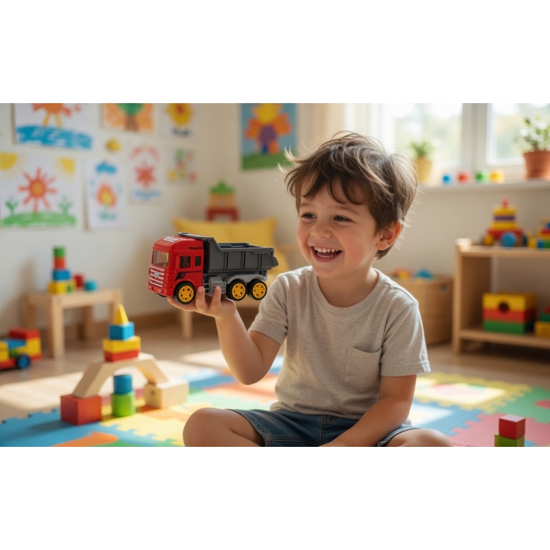 Această basculantă cu fricțiune de 13 cm este o jucărie interactivă și realistă, concepută special pentru micii constructori pasionați de șantiere și utilaje grele. După o simplă împingere ușoară, motorul cu inerție o face să ruleze o distanță impresionantă pe podea, oferind senzație autentică de viteză și forță.